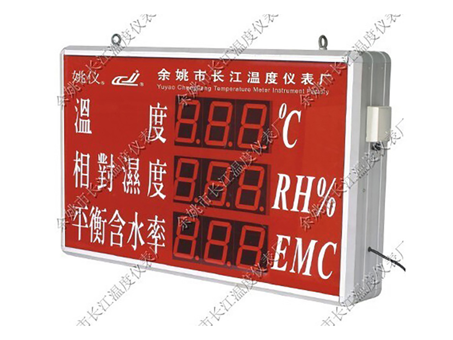 大屏溫濕度顯示儀,采用單(雙)面三排數(shù)碼管同時(shí)顯示溫度測量值、濕度測量值及平均含水率,溫濕度測量誤差可修正,適用于木材加工等場所的溫濕度和含平均水率測量。