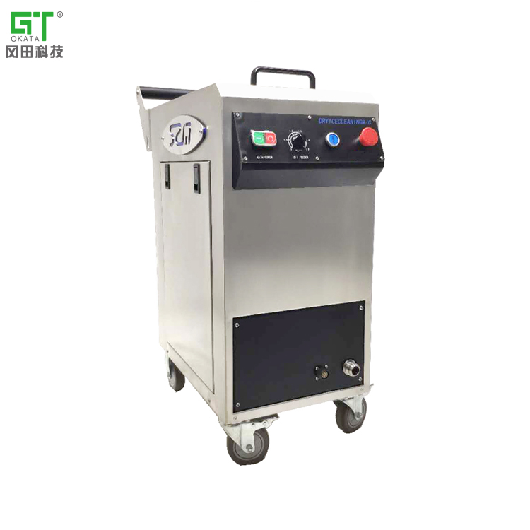 干冰清洗機(jī)是一種清洗機(jī),清洗系統(tǒng)通過(guò)高壓空氣將干冰清洗機(jī)的干冰粒噴射到需要清洗的工作表面,利用溫差的物理反應(yīng)使不同的物質(zhì)在不同的收縮速度下產(chǎn)生脫離。