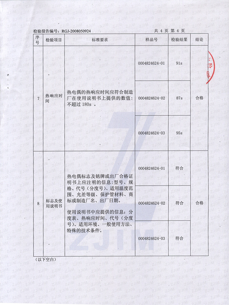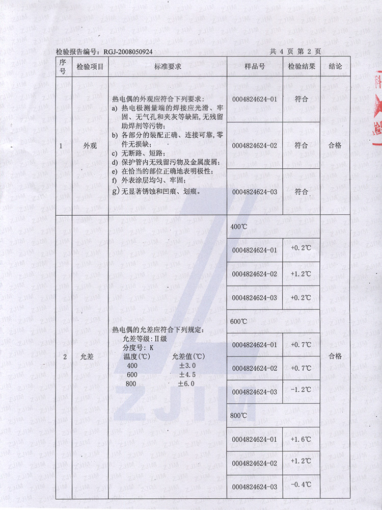 2008年度第2季度浙江省產(chǎn)品質(zhì)量監(jiān)督抽查報告(工業(yè)熱電偶)
