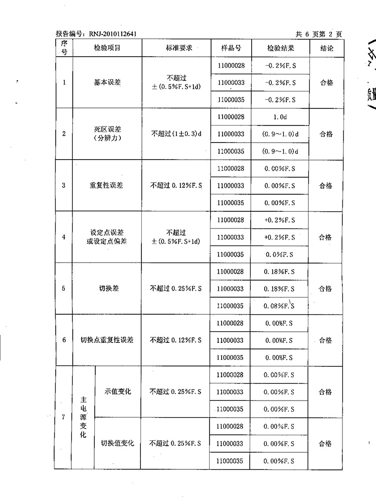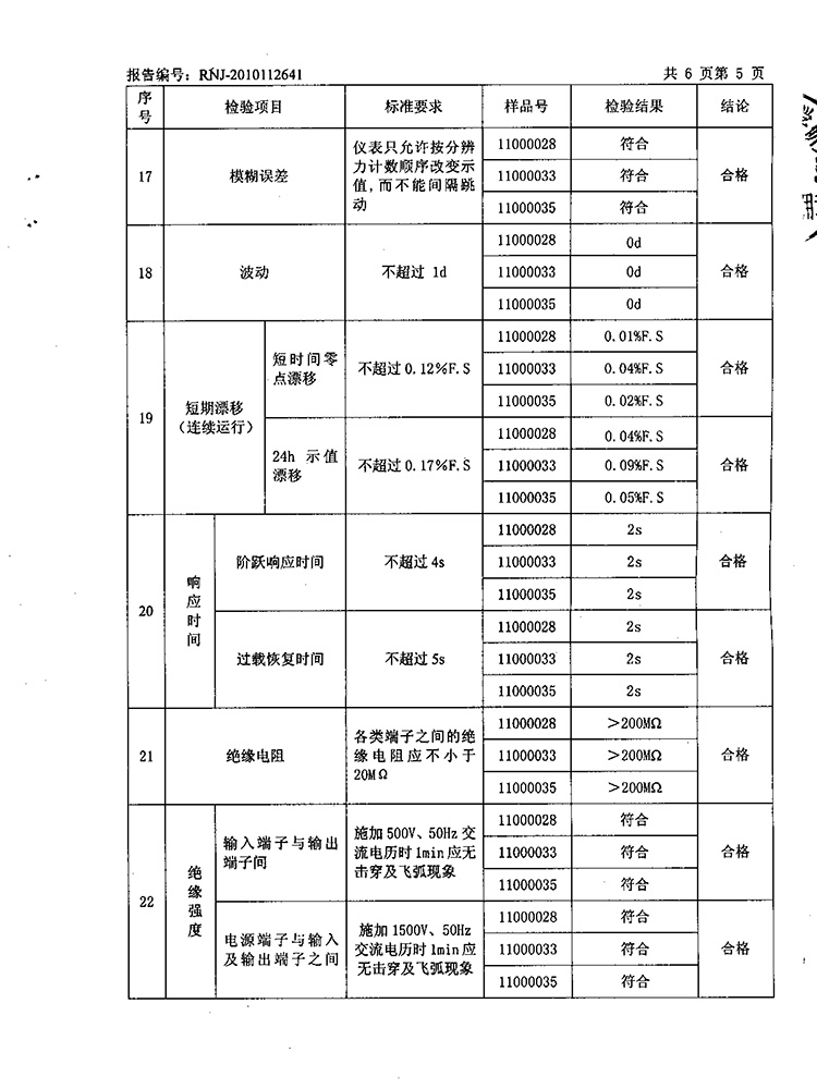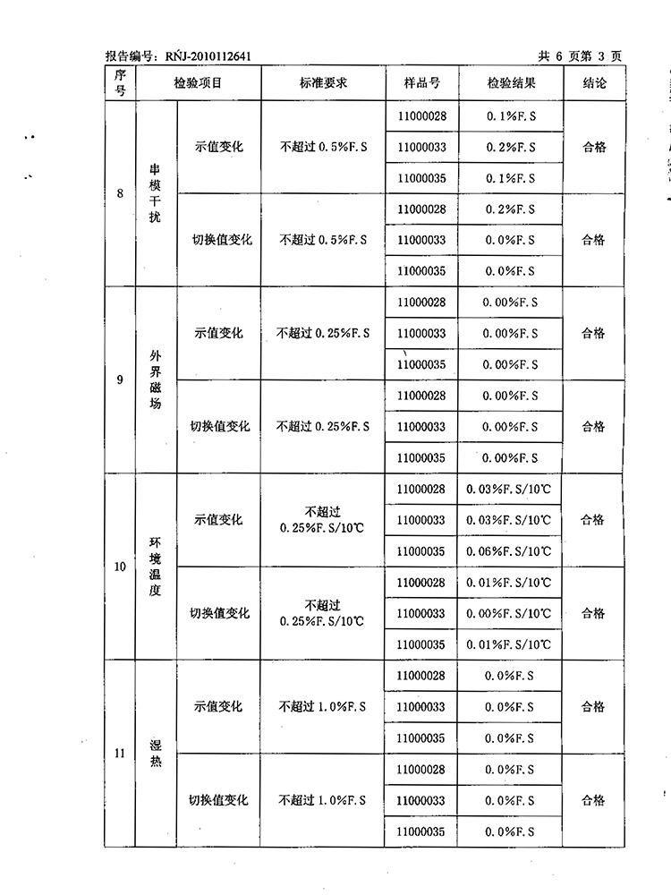 2011年第2季度檢測報(bào)告(工業(yè)熱電偶)
