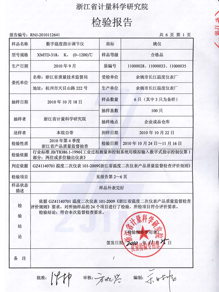 2010年第4季度檢驗(yàn)報(bào)告(XMTD-308)