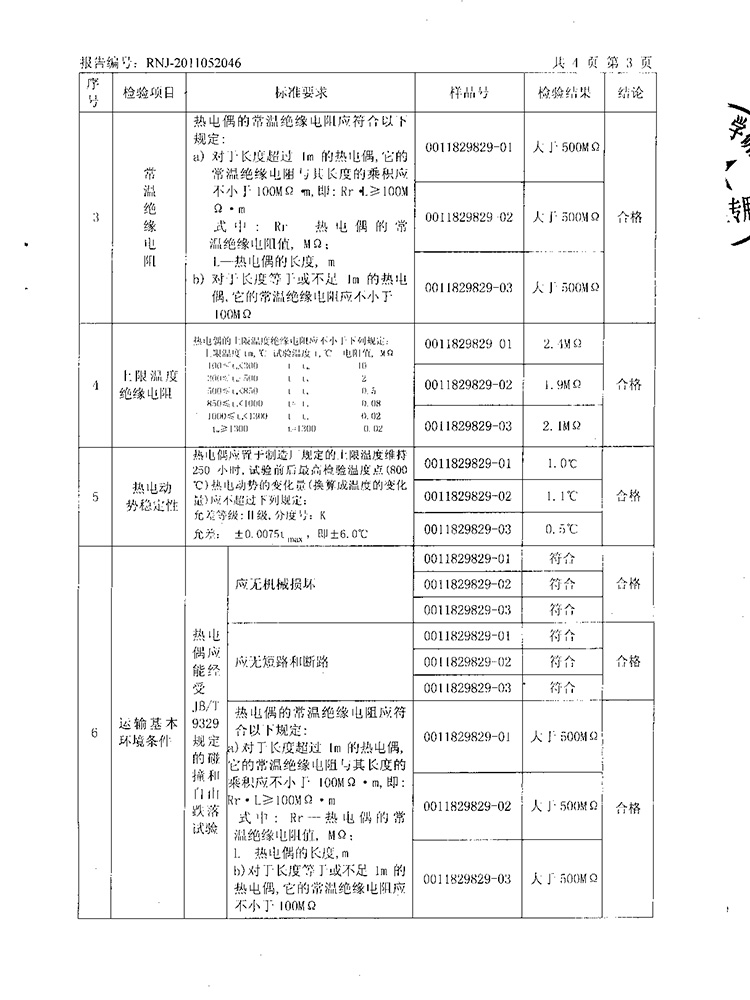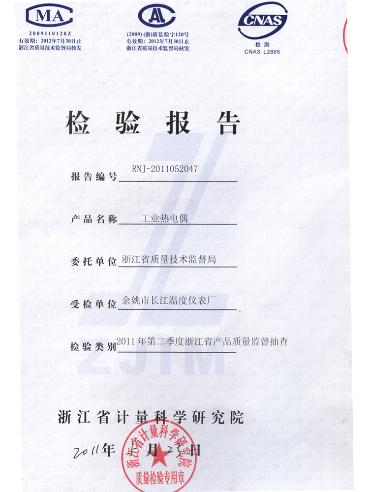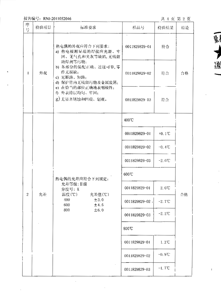 2011年第2季度檢測報告(工業(yè)熱電偶)