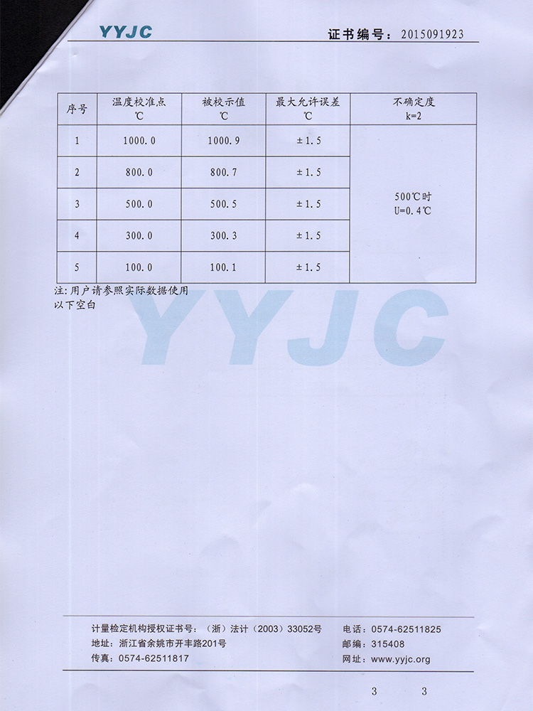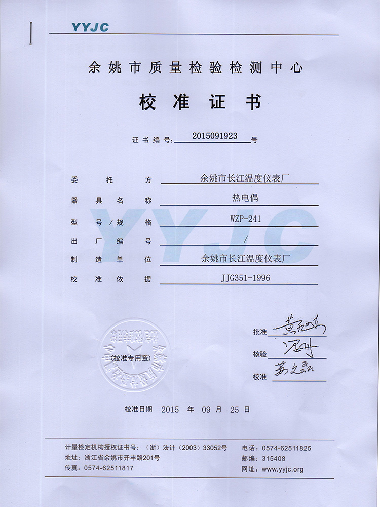 2016年工業(yè)熱電偶檢驗(yàn)報告